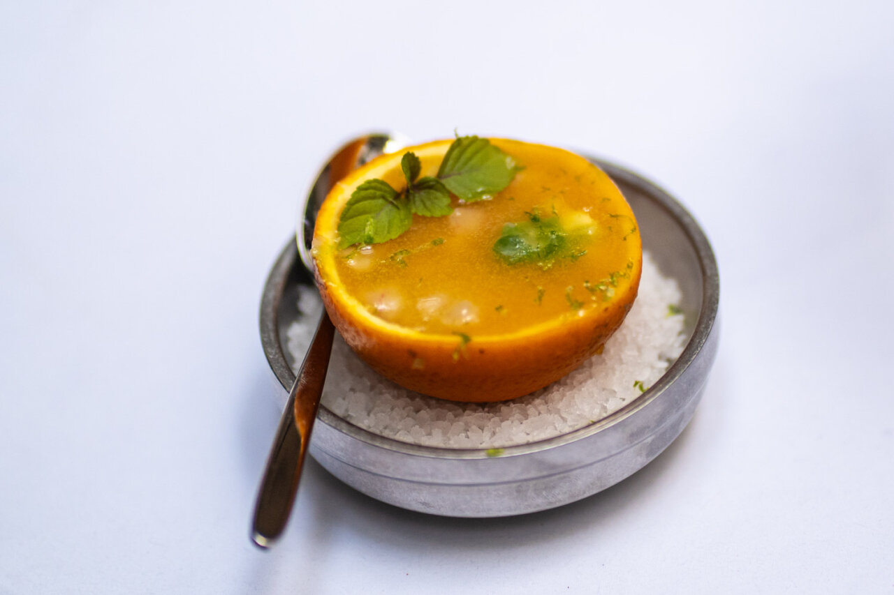 - Ceviche de gamba roja con naranja