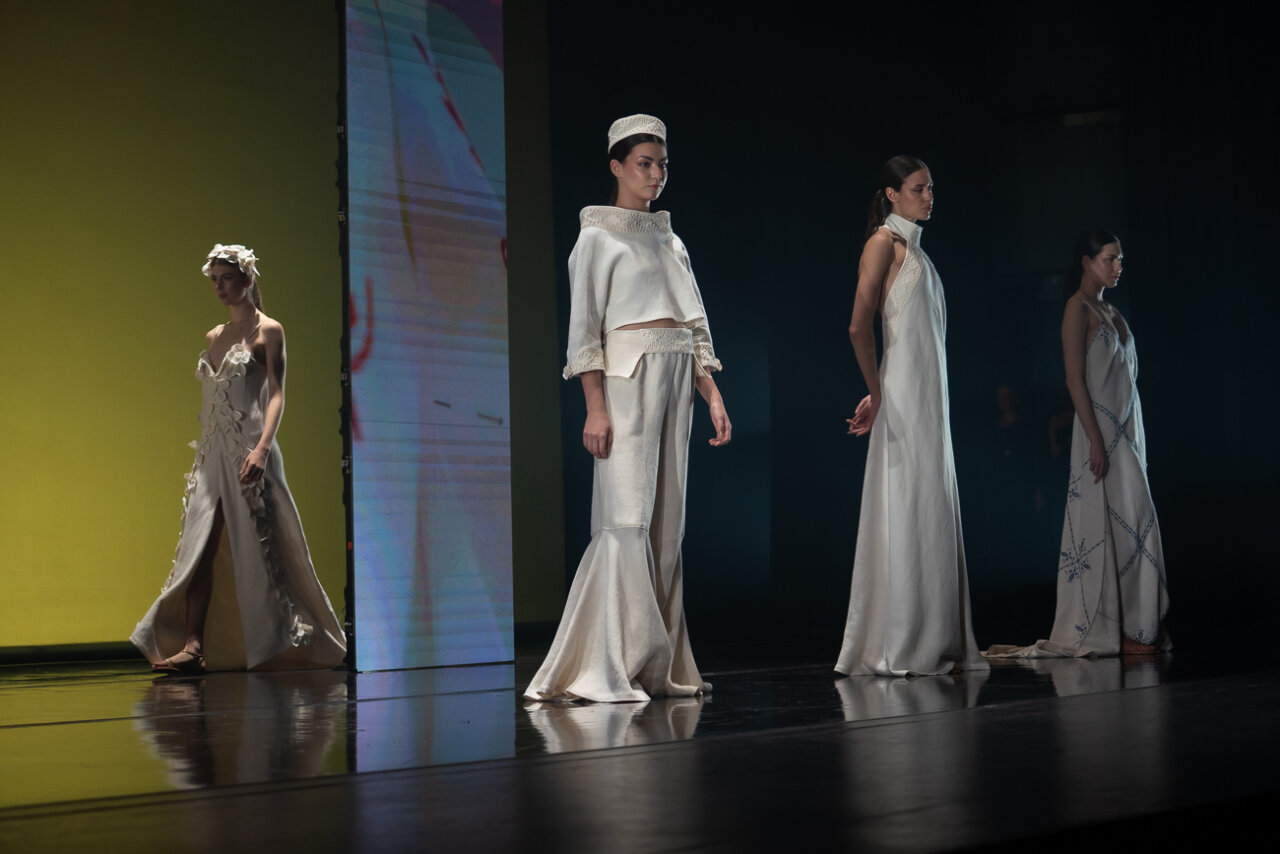 La coordinación (con Carme Coll al frente, como pegamento entre creadores, institución y equipo artístico) fue clave para que el conjunto no se sintiera como un catálogo, sino como una obra coral. La moda, aquí, no fue solo moda: fue identidad puesta a caminar.